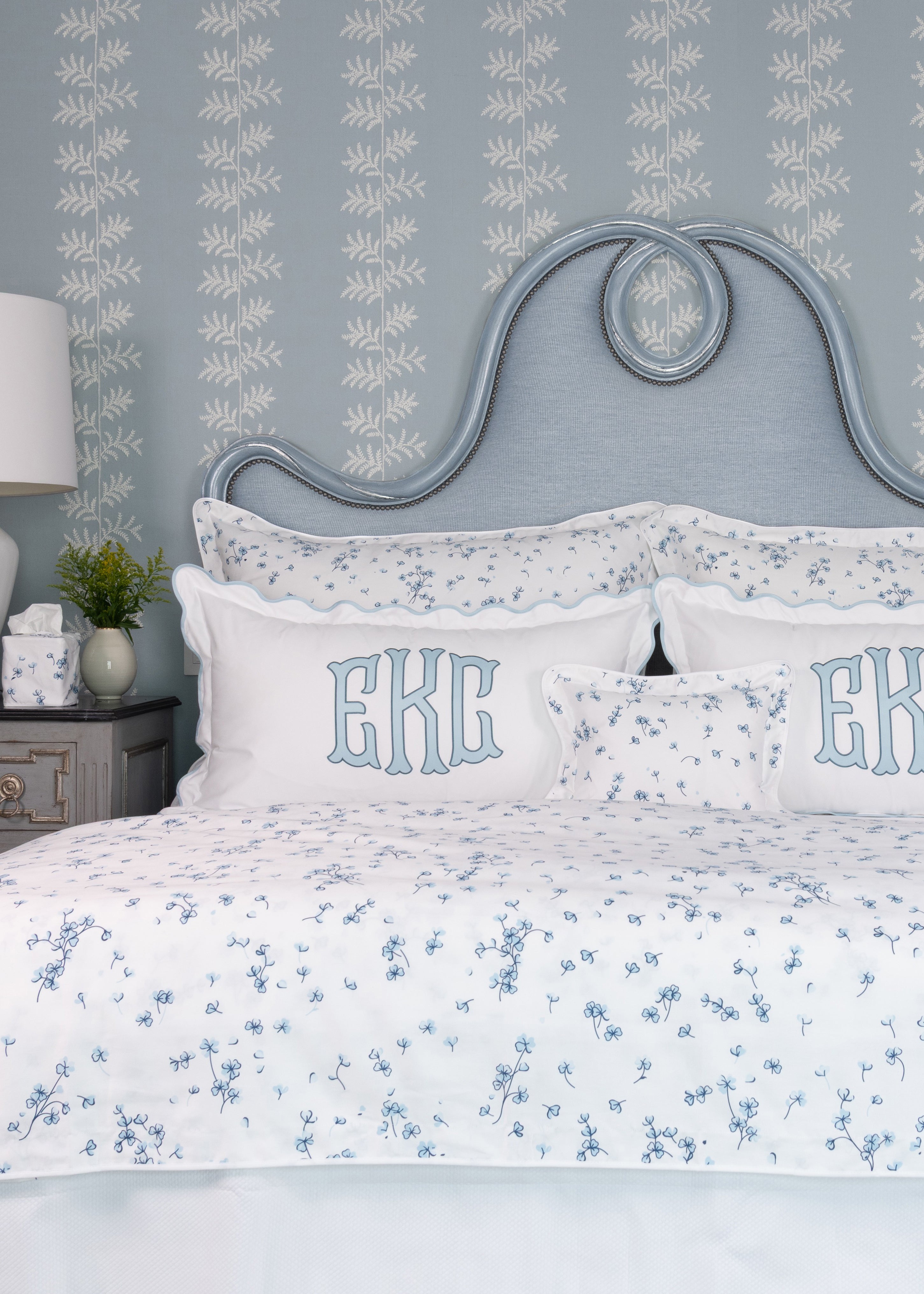 Meet Charm, a fresh take on our beloved cascading clover motif. This new print feels a little more playful and a touch more graphic, a wink to our signature clover, now reimagined with modern movement and easy charm. Finished with a white bound edge. Designed to mix seamlessly with our Scallop, Banded, and Diamond Pique styles.